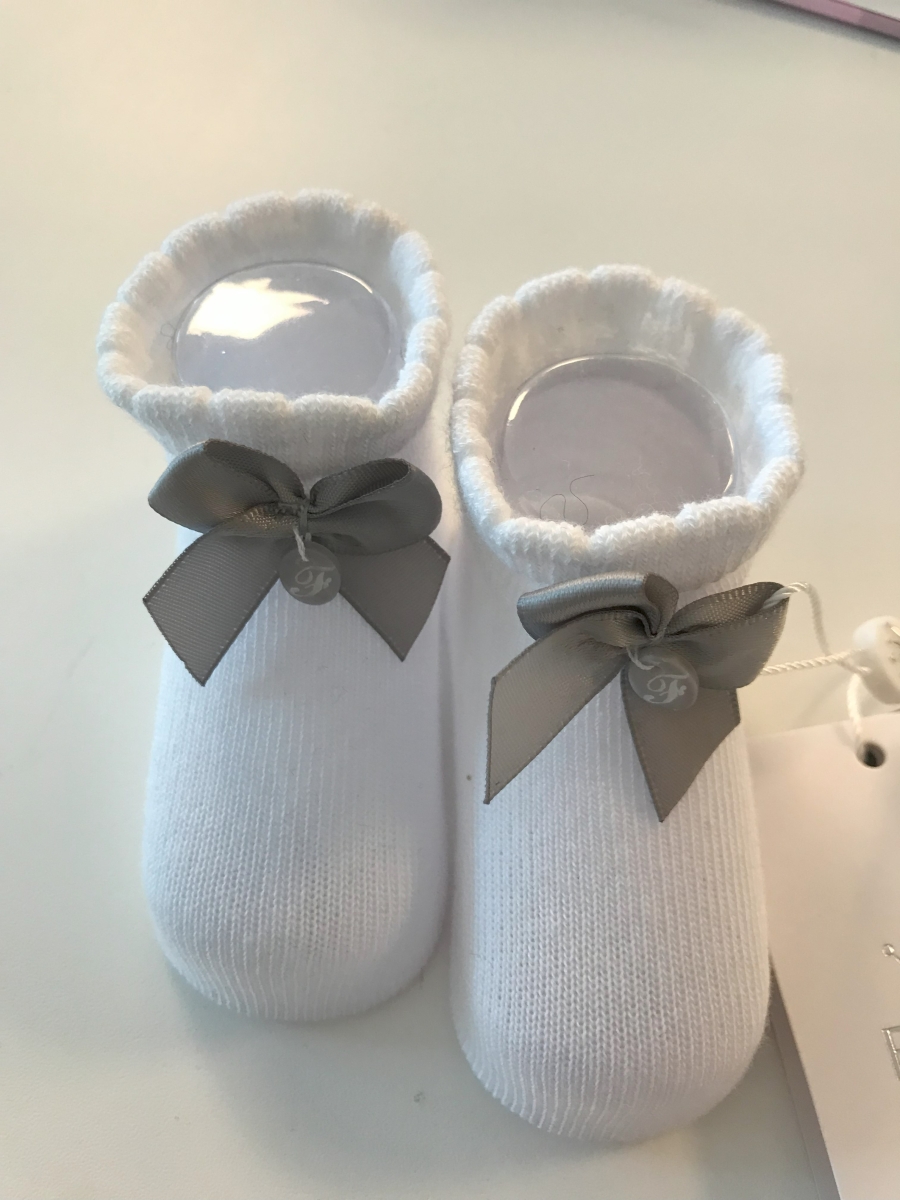 Baby sokjes Wit – met strikje Grijs – 15/18