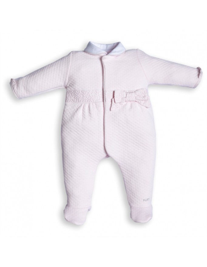 Babypakje – met voetjes, wit kraagje en strikje – Roze