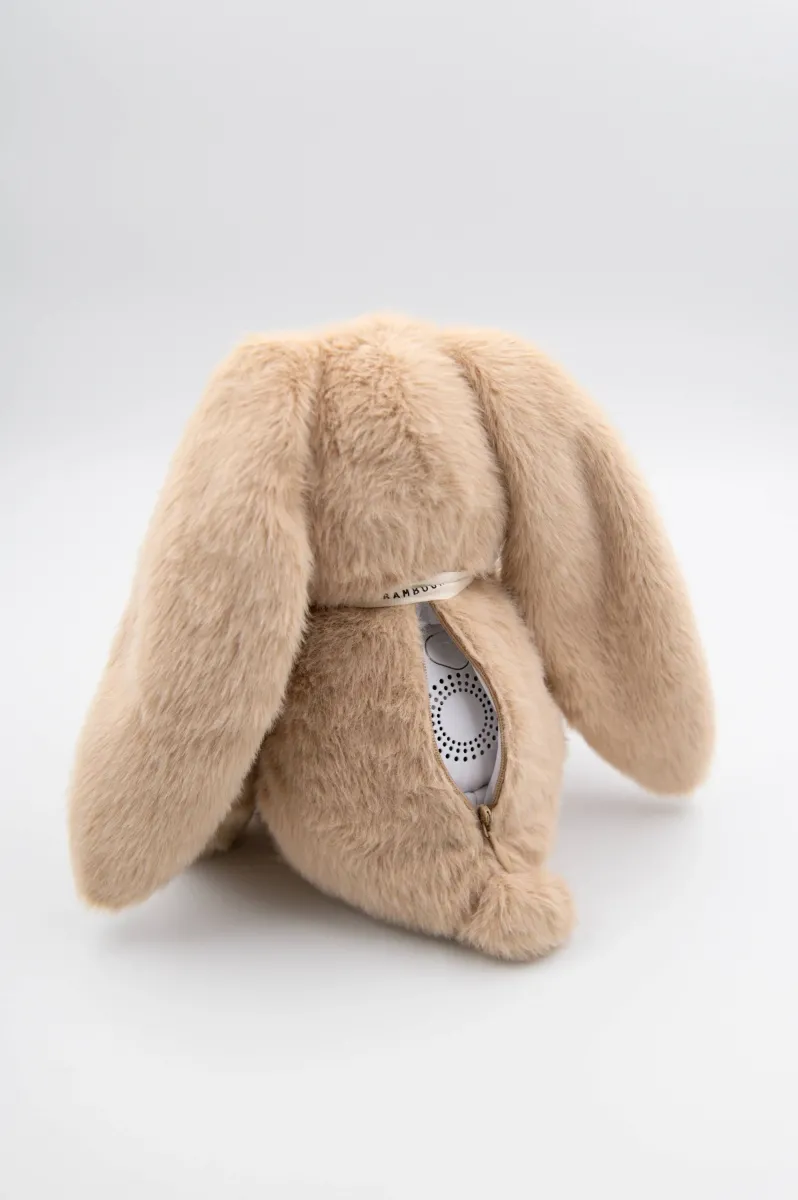 Het konijntje is een zachte en geruststellende knuffel dat baby’s slaap begeleidt met zachte lichtjes en kalmerende geluiden. Perfect voor het creëren van een rustige sfeer in de kinderkamer, omhult de baby in een zachte omhelzing, zowel tijdens het dutje als het slapengaan.